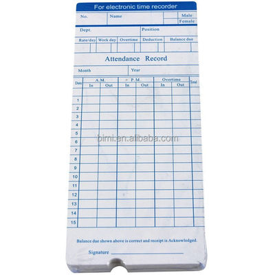 | Le type: | Heure de cartes perforées, cartes de paiement mensuelles (facultatif hebdomadaire) | Nom: | Les cartes Bimi 50 pièces par paquet. |